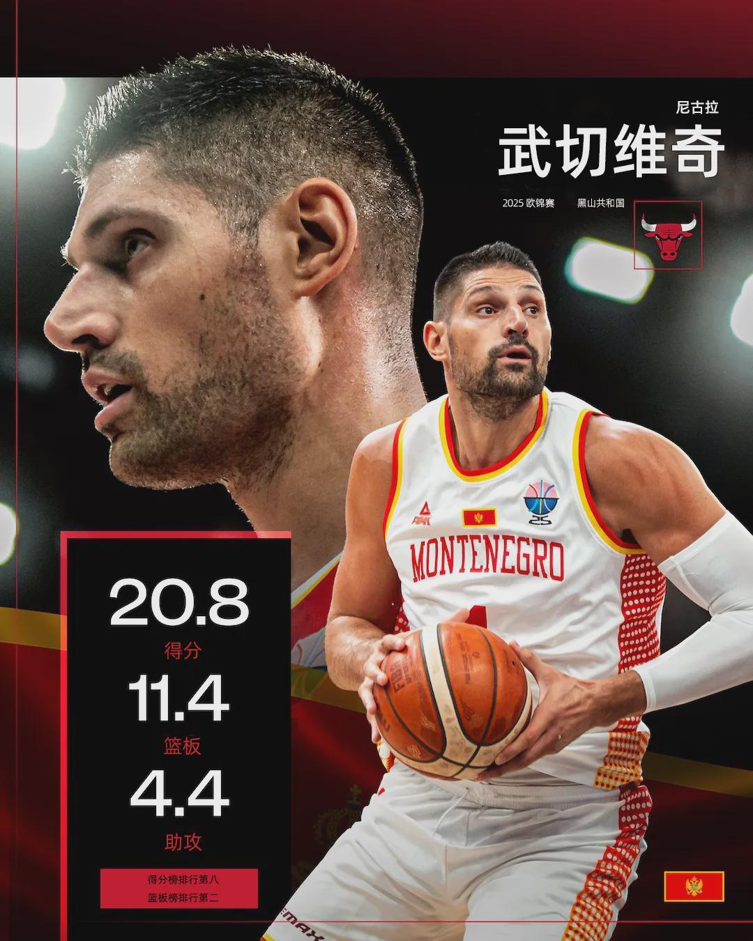 这哥们在今年欧锦赛场均贡献20.8分11.6板4.4助,其中谢幕战狂轰31分11板7助豪华数据,然而黑山仅赢了一场小组赛,从而无缘晋级淘汰赛,让他反倒像是空砍群群主。