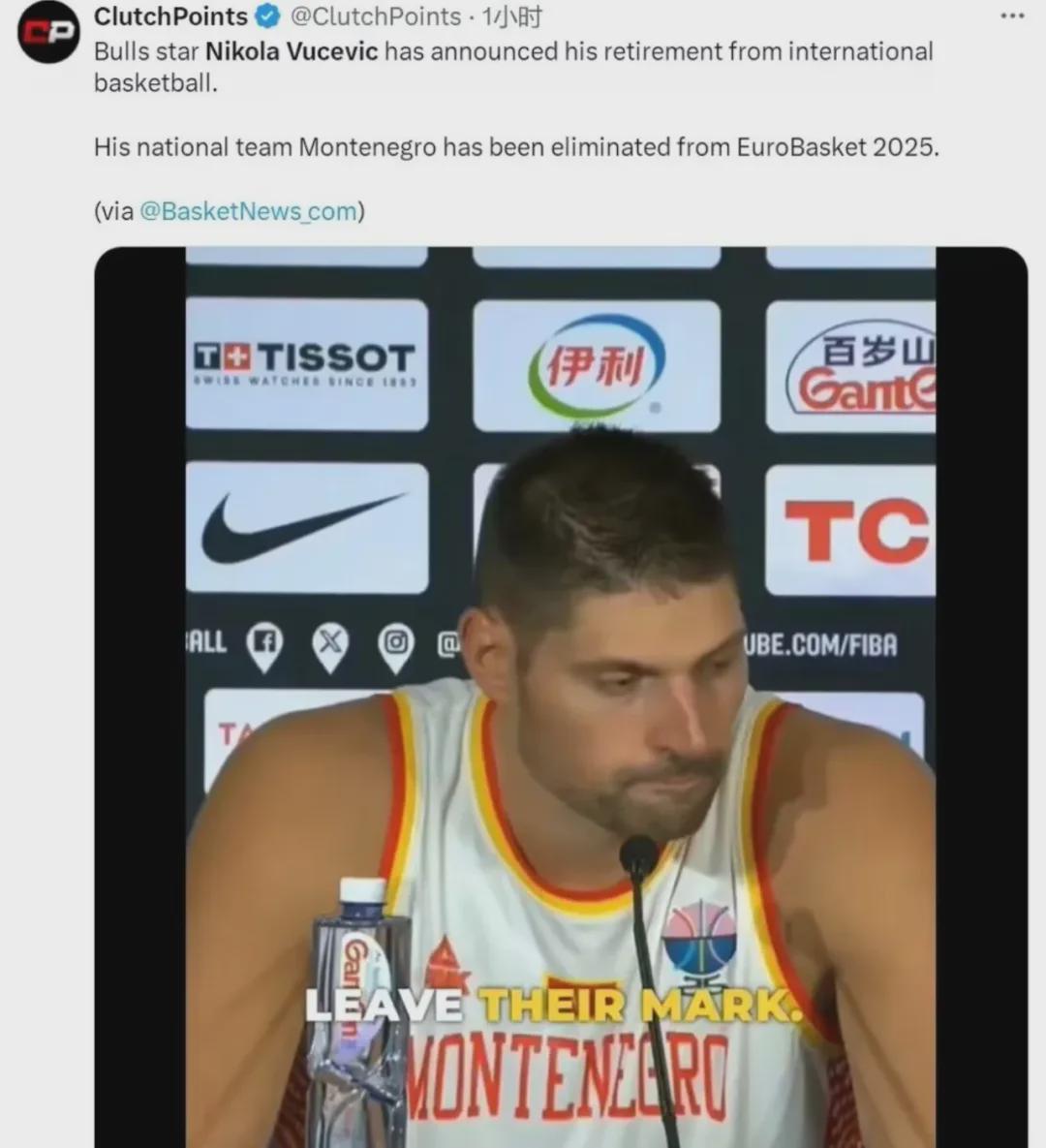武切维奇宣布从黑山男篮国家队退役......